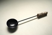 持ち手部分にナラ(ジャパニーズオーク)の天然木を使用したロウリュ用ラドル。自然の楢の小径木を使用しているので二つと同じ形状はありません。